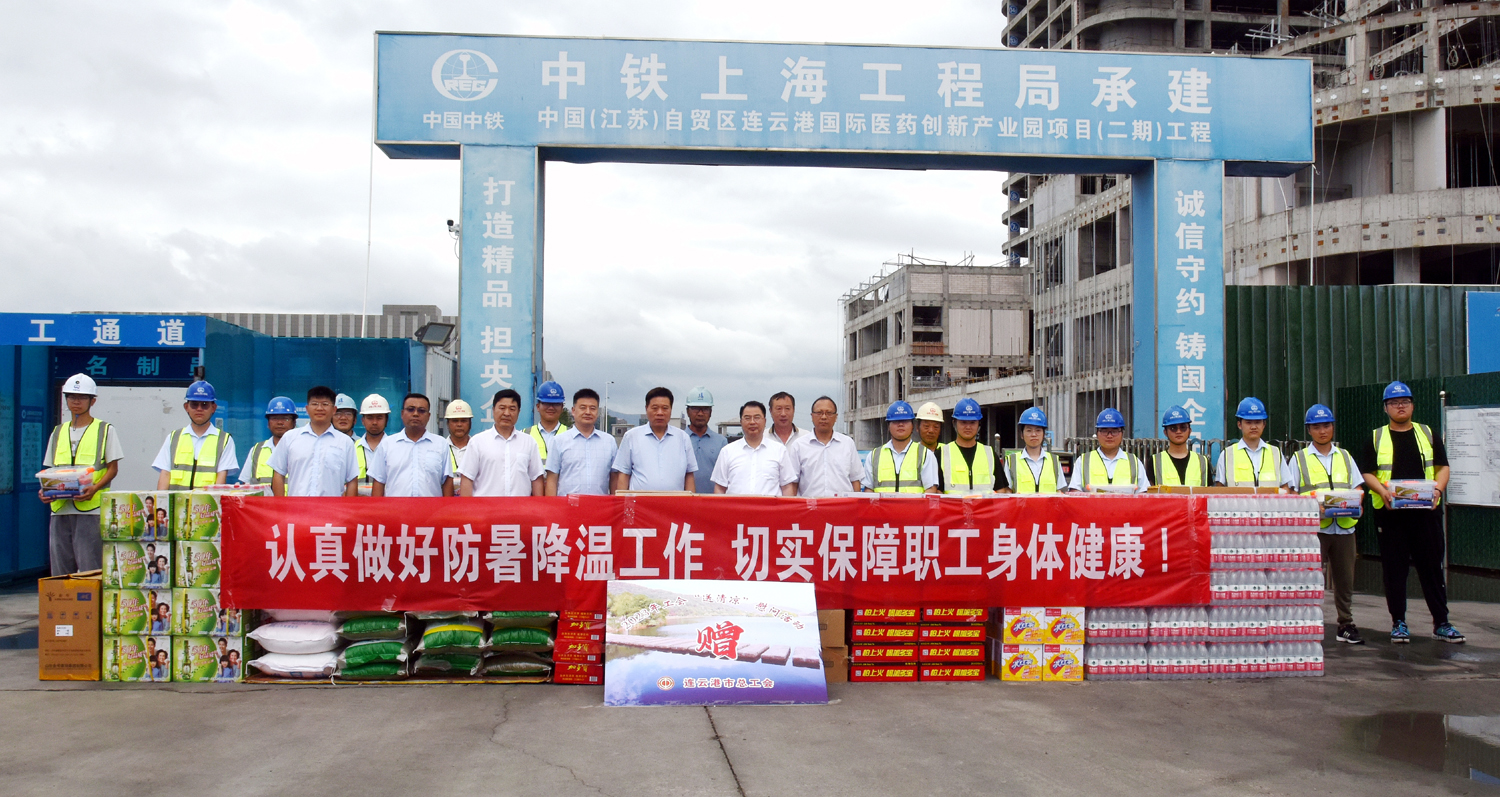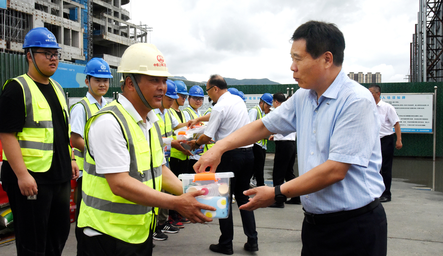 7月28日,市總工會(huì)黨組書記、副主席丁維杰帶領(lǐng)市總工會(huì)相關(guān)部門負(fù)責(zé)人一行,在集團(tuán)公司黨委副書記、工會(huì)主席戴鴻鳴的陪同下,看望慰問奮戰(zhàn)在市重大項(xiàng)目一線的建設(shè)者,并送上防暑急救箱等慰問品。 在集團(tuán)公司國際醫(yī)藥創(chuàng)新產(chǎn)業(yè)園二期項(xiàng)目工地,丁維杰與職工們親切交談,詳細(xì)了解生產(chǎn)生活情況,向頂高溫、冒酷暑,堅(jiān)守在崗位的工程項(xiàng)目建設(shè)者們致以崇高的敬意和親切的問候,希望他們?cè)趫?jiān)守崗位的同時(shí),增強(qiáng)自我保護(hù)意識(shí),做好防暑降溫工作。同時(shí)督促建設(shè)單位要貫徹落實(shí)防暑降溫政策措施,增設(shè)防暑降溫設(shè)施,保障項(xiàng)目建設(shè)一線勞動(dòng)者的人身安全和身體健康。