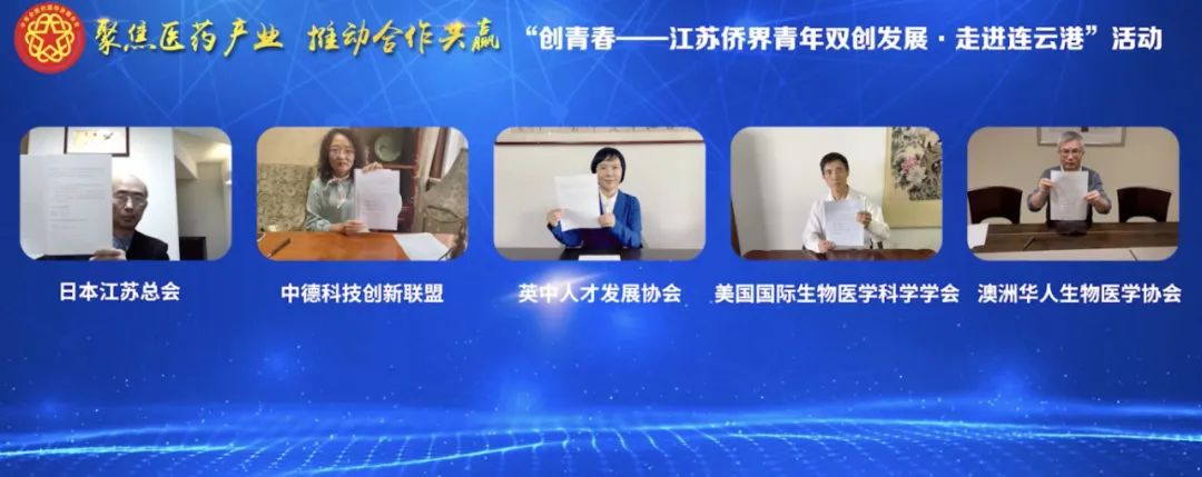 活動(dòng)中,集團(tuán)公司通過(guò)線上方式,與日本江蘇總會(huì)、中德科技創(chuàng)新聯(lián)盟、英中人才發(fā)展協(xié)會(huì)、美國(guó)國(guó)際生物醫(yī)學(xué)學(xué)會(huì)、澳洲華人生物醫(yī)學(xué)科學(xué)協(xié)會(huì)等海外僑社團(tuán)簽署了合作意向書(shū);集團(tuán)公司國(guó)際醫(yī)藥創(chuàng)新產(chǎn)業(yè)園與4家省內(nèi)僑青企業(yè)現(xiàn)場(chǎng)簽訂合作協(xié)議。
