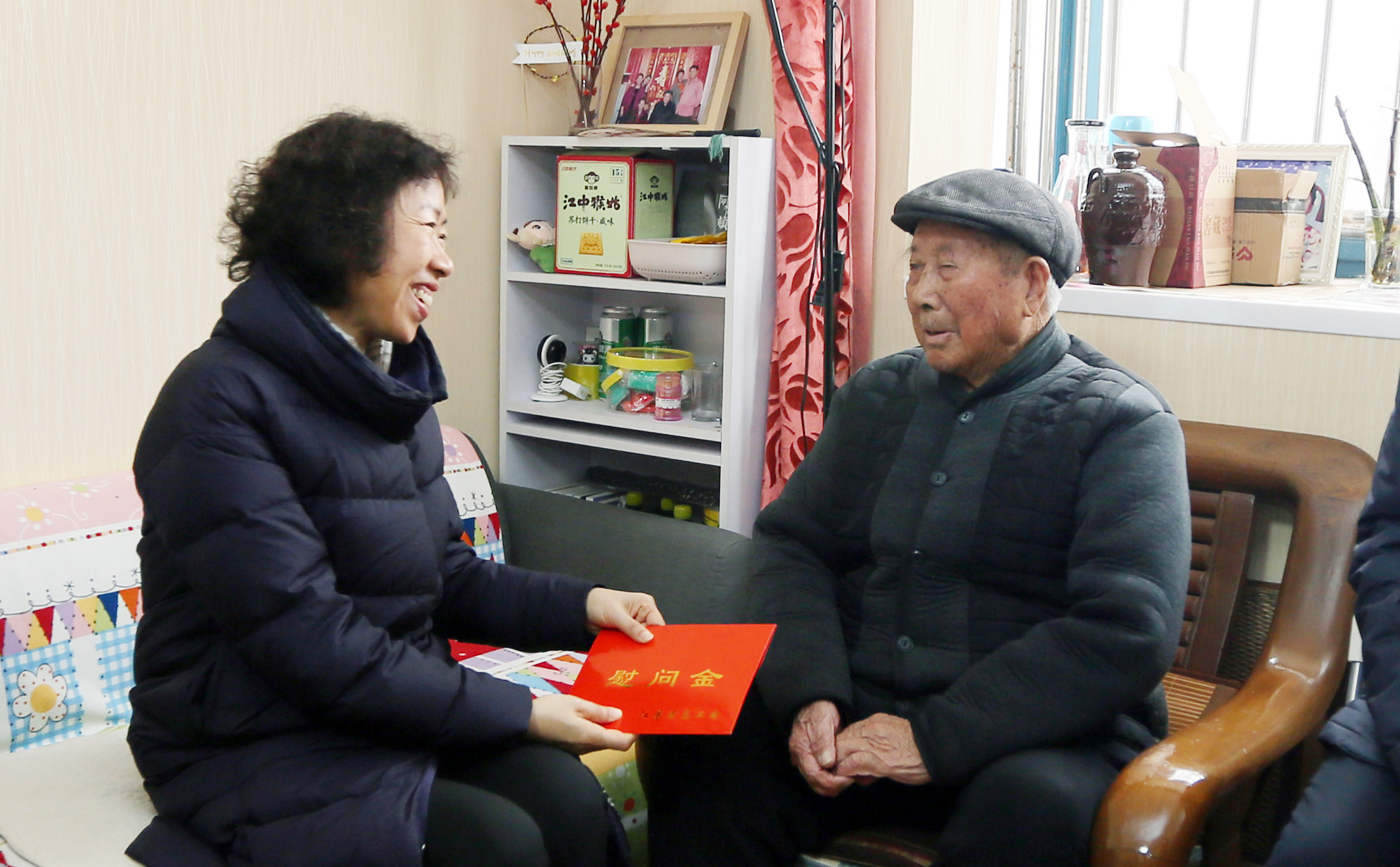 在新中國成立前參加工作的全國勞動模范王壽明家中,朱勁松代表省總工會向老勞模致以崇高的敬意和誠摯的問候,感謝他為國家和企業(yè)發(fā)展作出的突出貢獻。并和老人親切交談,詳細了解他的生活狀況和健康情況。朱勁松說,勞模是時代的先鋒、社會的楷模,走進新時代,我們更要將勞模精神傳承好、弘揚好,凝聚強大的發(fā)展正能量。朱勁松囑咐老人要保重身體,并祝愿他新春快樂,安享晚年。