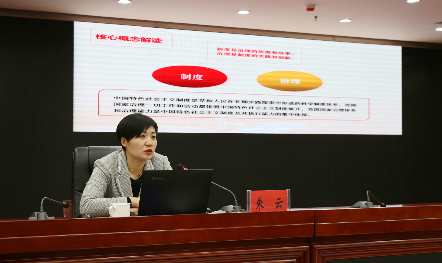 朱云以“開辟中國之治新境界”為題,緊緊圍繞黨的十九屆四中全會精神,系統(tǒng)闡述和深入解讀了堅持和完善中國特色社會主義制度、推進國家治理體系和治理能力現(xiàn)代化的重大意義、總體要求、總體目標(biāo)、重點任務(wù)。宣講報告聚焦重點和關(guān)鍵,將理論與實際、案例與數(shù)據(jù)相結(jié)合,內(nèi)涵豐富、論述精辟、通俗易懂,令與會人員深受啟迪,倍受教育。