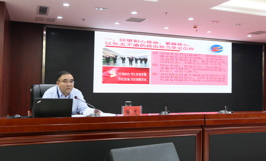 根據(jù)“不忘初心、牢記使命”主題教育總體安排,10月23日,集團(tuán)公司舉辦主題教育專題黨課學(xué)習(xí)會(huì),黨委書記、董事長(zhǎng)、主題教育領(lǐng)導(dǎo)小組組長(zhǎng)楊龍作“堅(jiān)守初心使命、奮力擔(dān)當(dāng)作為,全面推動(dòng)工投集團(tuán)高質(zhì)量跨越發(fā)展”的專題黨課。原市委副秘書長(zhǎng)、主題教育第十指導(dǎo)組組長(zhǎng)徐毓敏到會(huì)指導(dǎo)。集團(tuán)公司黨委副書記、總經(jīng)理胡建明等領(lǐng)導(dǎo)班子成員參加學(xué)習(xí)會(huì)。集團(tuán)公司黨委副書記戴鴻鳴主持學(xué)習(xí)會(huì)。 楊龍從五個(gè)方面入手,詳細(xì)闡述解讀了新時(shí)代工投廣大黨員初心和使命是什么,在集團(tuán)高質(zhì)量跨越發(fā)展進(jìn)程中,共產(chǎn)黨員應(yīng)當(dāng)發(fā)揮什么樣的作用。他指出,要回望初心使命,緊跟核心,以矢志不渝的政治擔(dān)當(dāng)堅(jiān)定信仰。要經(jīng)常捫心自問“五個(gè)有沒有做到”。有沒有做到把新思想作為最高信仰,把“兩個(gè)維護(hù)”作為根本原則?有沒有做到把拼搏進(jìn)取作為人生信條,把敢于擔(dān)當(dāng)作為精神境界?有沒有做到把較真碰硬作為一面鏡子,把敬業(yè)奉獻(xiàn)作為一把尺子?有沒有做到把群眾滿意作為第一標(biāo)準(zhǔn),把民生改善作為第一追求?有沒有做到把紀(jì)律規(guī)矩作為立身之本,把清正廉潔作為基本底線?堅(jiān)守信仰信念、筑牢思想根基;淬練政治品格,對(duì)黨絕對(duì)忠誠;挺起奮斗姿態(tài)、增強(qiáng)責(zé)任擔(dān)當(dāng)。