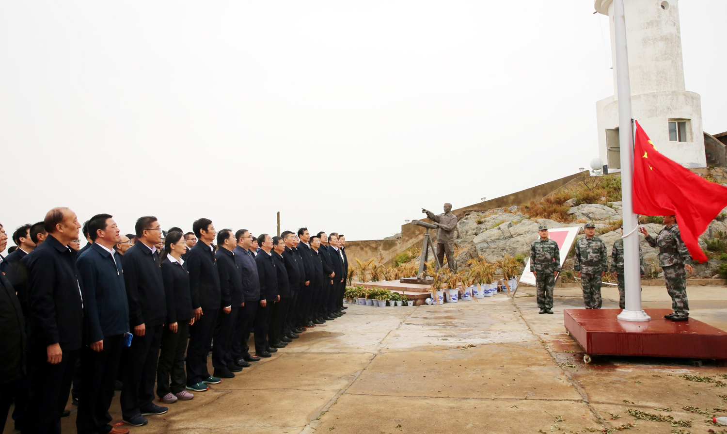 為進(jìn)一步踐行“不忘初心、牢記使命”主題教育,追尋“人民楷模”王繼才、王仕花夫婦的守島精神,10月10日,集團(tuán)公司黨委書記、董事長(zhǎng)楊龍,總經(jīng)理胡建明等黨委領(lǐng)導(dǎo)班子成員與機(jī)關(guān)部分黨員、各單位黨內(nèi)先進(jìn)代表等共100人,冒雨赴江蘇省干部黨性教育基地——開山島,開展“學(xué)習(xí)人民楷模王繼才、踐行初心使命勇?lián)?dāng)”黨性教育活動(dòng)。 在面積只有兩個(gè)足球場(chǎng)大的開山島上,全體黨員參觀了王繼才同志生前工作生活過的場(chǎng)所,看望慰問王仕花和守島民兵,舉行莊嚴(yán)的升國(guó)旗和重溫入黨誓詞儀式。在王繼才先進(jìn)事跡展覽室,一件件實(shí)物和一幅幅圖片,從不同角度、不同側(cè)面生動(dòng)的再現(xiàn)了王繼才“島就是家、島就是國(guó)”,扎根海島、獻(xiàn)身海防的先進(jìn)事跡和奉獻(xiàn)精神?;顒?dòng)期間,大家還觀看了紀(jì)錄片《守島32年》,認(rèn)真聆聽了王仕花講授的關(guān)于守島衛(wèi)國(guó)32年,用無怨無悔的堅(jiān)守和付出,在平凡的崗位上書寫了不平凡人生華章的微黨課。