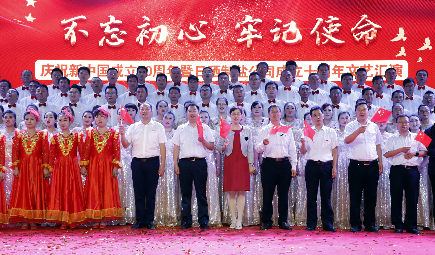 日曬制鹽公司舉辦以“不忘初心、牢記使命”為主題的慶祝新中國成立七十周年、日曬制鹽公司成立十周年文藝演出。憶初心,回顧日曬制鹽公司成立十年來的發(fā)展歷程;擔使命,展示日曬制鹽公司成立十年來發(fā)展成就。表彰先進、宣傳典型,展示廣大員工創(chuàng)新創(chuàng)業(yè)的奮斗精神和發(fā)展信心。
