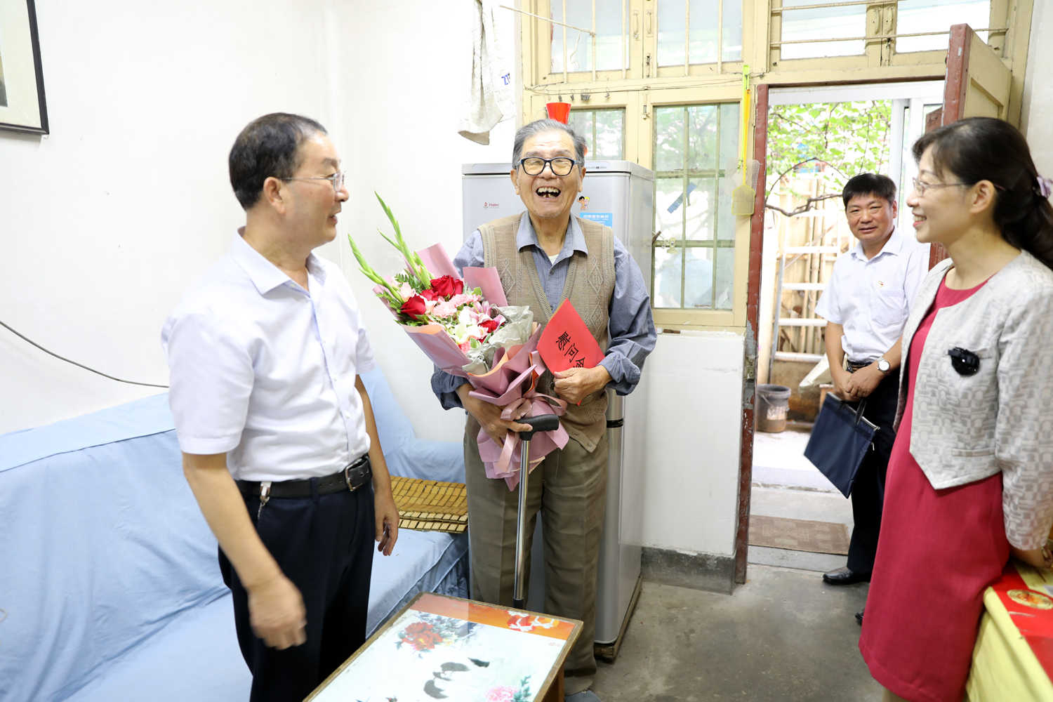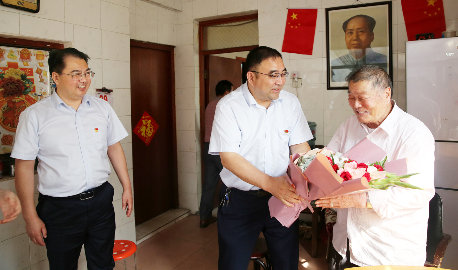 集團公司董事長、黨委書記楊龍,總經(jīng)理胡建明、黨委副書記戴鴻鳴、紀委書記汪群等領導分組走訪慰問部分建國前參加工作的老黨員、老干部,為他們送去慰問金和鮮花,同慶新中國七十周歲華誕。