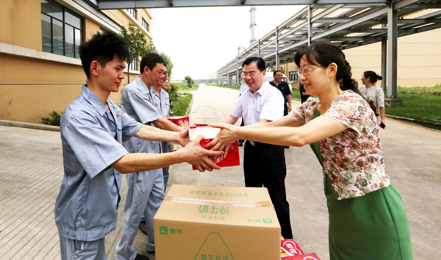 炎炎夏日送清涼,點滴關(guān)愛暖人心。連日來,驕陽似火,酷暑難耐。718-20日,集團公司領(lǐng)導楊龍、胡建明、張其海、朱天松、戴鴻鳴、汪群、匡友本等輕車簡從,分赴基層一線,進車間、入工地、到灘(田)頭,慰問在高溫下堅守崗位的廣大員工,送去綠豆、白糖等防暑降溫品,在炎炎夏日中將“清涼”送到職工心坎上。