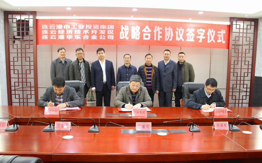 1月4日上午,集團公司與連云經濟開發(fā)區(qū)、連云港華樂合金公司舉行戰(zhàn)略合作協(xié)議簽約儀式,集團公司總經理胡建明、總會計師匡友本,連云區(qū)委常委、連云開發(fā)區(qū)黨工委書記張其兵,連云港華樂合金公司董事長陸大淦等出席簽約儀式。