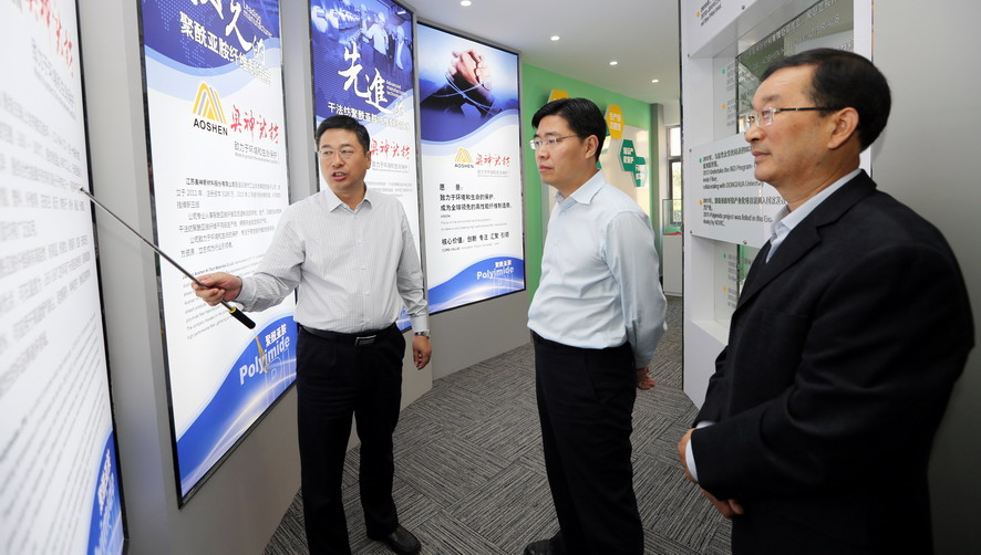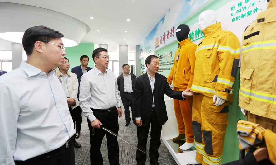 曹衛(wèi)東一行先后參觀了奧神新材料公司展廳和聚酰亞胺高性能纖維生產(chǎn)車(chē)間,并聽(tīng)取了相關(guān)情況匯報(bào),對(duì)奧神新材料公司的研發(fā)能力和高性能纖維產(chǎn)業(yè)發(fā)展成效給予了充分肯定。曹衛(wèi)東指出,奧神新材料公司成立五年來(lái),以創(chuàng)新驅(qū)動(dòng)轉(zhuǎn)型為動(dòng)力,致力推進(jìn)企業(yè)技術(shù)創(chuàng)新、產(chǎn)品創(chuàng)新和市場(chǎng)創(chuàng)新,取得了令人矚目的成績(jī)?!笆濉逼陂g,作為高性能纖維自主研發(fā)制造企業(yè)、聚酰亞胺纖維干法紡絲生產(chǎn)核心技術(shù)的掌握者,奧神新材料公司要進(jìn)一步突出高、新、優(yōu)特色,切實(shí)踐行創(chuàng)新發(fā)展理念,加強(qiáng)自主知識(shí)產(chǎn)權(quán)保護(hù),在聚酰亞胺纖維研發(fā)及生產(chǎn)方面著力突破新技術(shù)、提升創(chuàng)新力,推動(dòng)產(chǎn)業(yè)高端化、規(guī)?;⒓刍l(fā)展,打造國(guó)內(nèi)一流的新材料產(chǎn)業(yè)基地,為推動(dòng)連云港市纖維新材料產(chǎn)業(yè)發(fā)展做出新的貢獻(xiàn)。