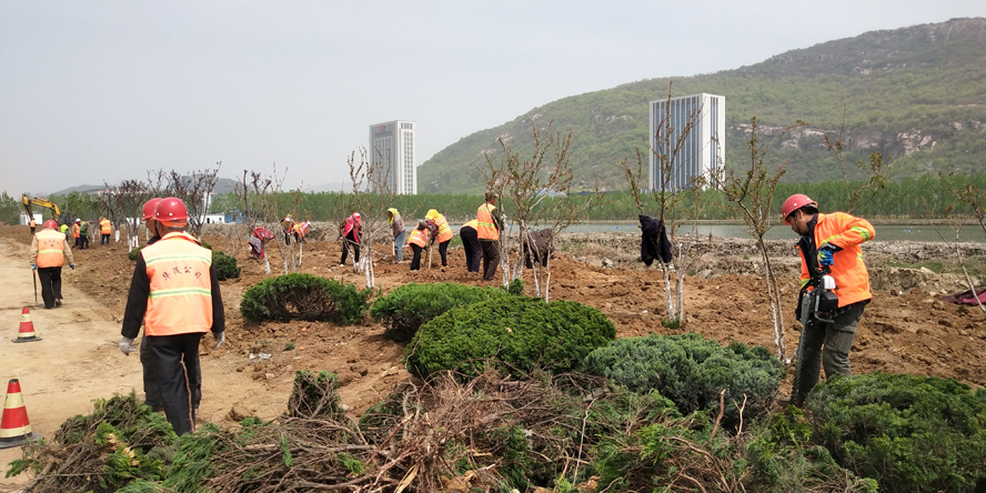 綠化工程施工緊鑼密鼓。公司承接的昌圩湖路移苗工程、242省道綠化恢復(fù)工程、江寧工業(yè)園242高速入口道路綠化補(bǔ)植工程、中科院環(huán)境提升改造工程等六項(xiàng)綠化工程,總價(jià)680多萬(wàn)元,“五一”期間進(jìn)入施工關(guān)鍵期,裕升、裕欣、裕祥養(yǎng)護(hù)公司和益豐園林公司的技術(shù)骨干、綠化工人放棄假日休息,持續(xù)投入到緊張有序的施工之中,瑞泰服務(wù)公司、盛達(dá)市政公司水車、挖掘機(jī)、運(yùn)輸車等機(jī)械車輛緊密配合綠化工程施工,起苗、運(yùn)苗、上土、栽苗、搭架、澆水等環(huán)節(jié)緊扣,每一個(gè)作業(yè)現(xiàn)場(chǎng)都是一幅人頭攢動(dòng)、車來(lái)人往的忙碌勞動(dòng)畫面。