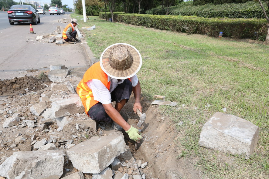 著開發(fā)區(qū)上下“創(chuàng)衛(wèi)”工作的不斷開展,盛達(dá)市政公司工程項(xiàng)目部身上的擔(dān)子也變得重了起來(lái),8月26日上午,在新光路現(xiàn)場(chǎng),筆者看到該公司工程項(xiàng)目部的人員正在進(jìn)行著路牙石、人行道磚的清理更換工作。