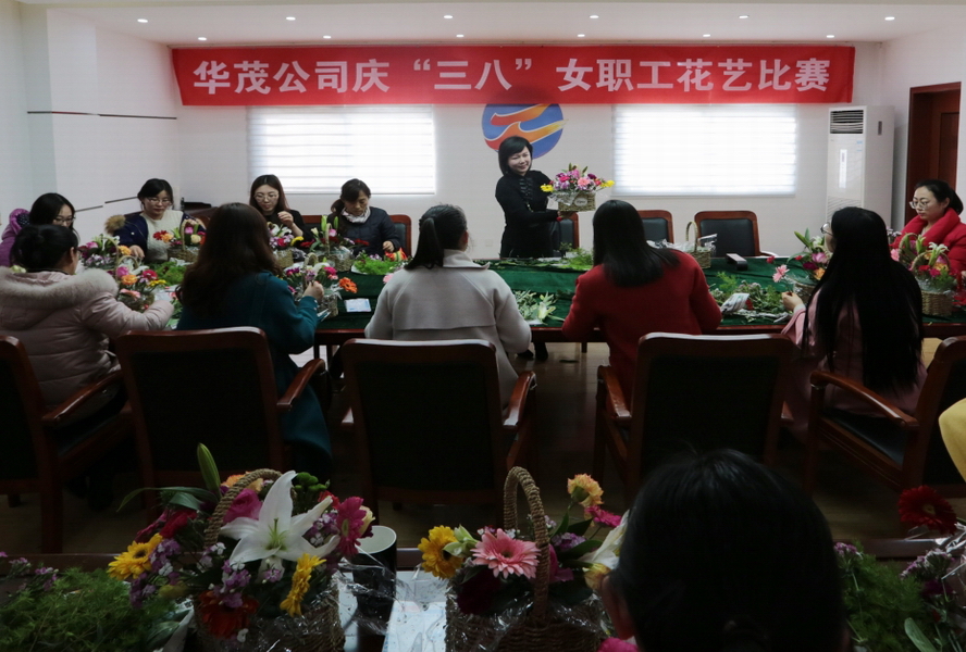 為慶?!叭恕眹H勞動?jì)D女節(jié),營造熱烈的節(jié)日氛圍,3月6日下午,華茂綠化工程公司工會開展了女職工“花藝比賽”活動?;顒犹匮ㄋ?yán)蠋煬F(xiàn)場授課,為女職工們講述了插花的種類和插花的原則。在聽取老師花藝講座后,女職工們開始了插花比賽。經(jīng)過老師點(diǎn)評,最終趙盼、趙宏媛、王芬分別獲得了本次比賽的前三名。