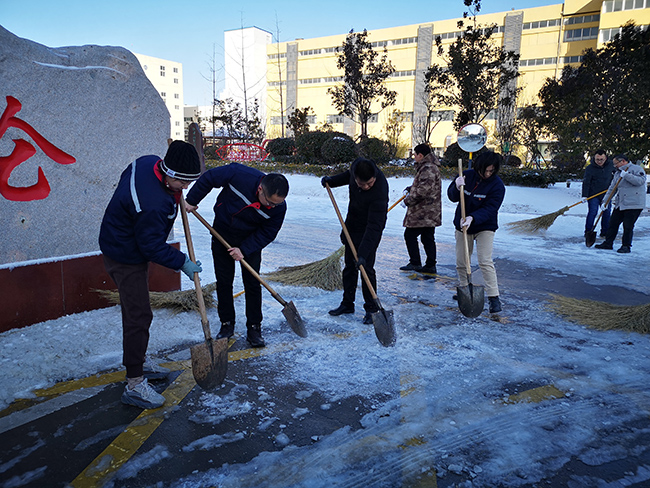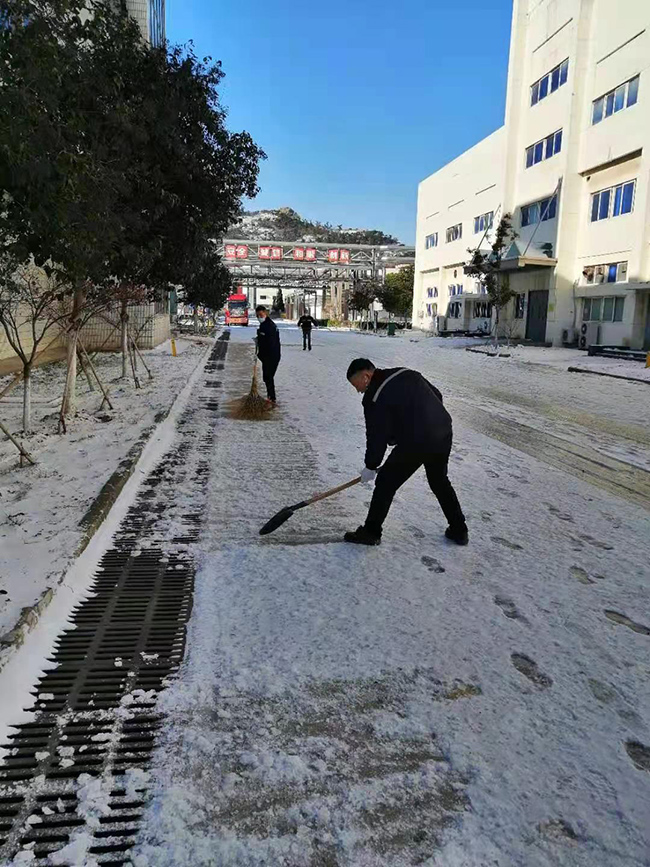 12月29日,港城迎來了2020年的第一場雪。白雪皚皚,北風呼嘯,廠區(qū)各個生產(chǎn)設施道路上都覆蓋上了厚厚的積雪。雖是一片銀裝素裹的美景,卻給廠內(nèi)廣大職工的出行工作造成極大不便。為了保障公司安全穩(wěn)定生產(chǎn)和員工出行道路安全,杜鐘氨綸公司黨委迅速組織開展了清除積雪大掃除活動。