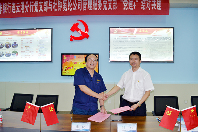 8月8日,杜鐘氨綸公司管理服務(wù)黨支部與恒豐銀行連云港分行黨支部在黨建活動(dòng)室舉行了“黨建+”結(jié)對(duì)共建協(xié)議簽約儀式。