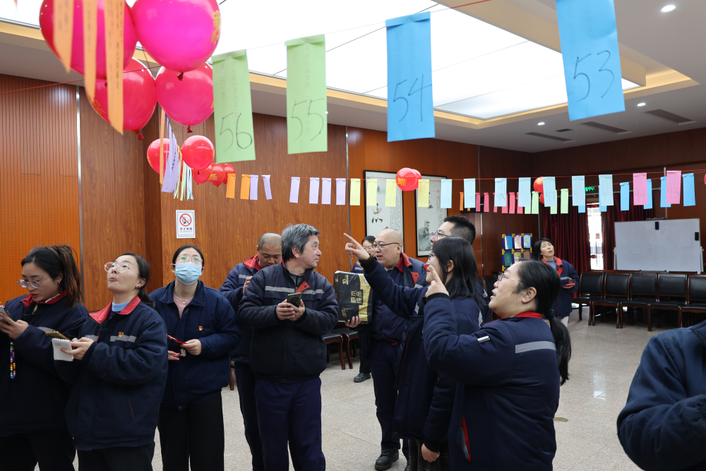 活動(dòng)現(xiàn)場(chǎng)張燈結(jié)彩,氣氛熱烈,一條條精心設(shè)計(jì)的廉政謎語高高懸掛,既有與黨紀(jì)法規(guī)、黨風(fēng)廉政相關(guān)的專業(yè)詞匯,也有寓意深刻的廉潔故事和成語典故。如“反腐倡廉長抓不懈”打一地名,謎底是“長治”;“把守關(guān)口兩門神”則巧妙地對(duì)應(yīng)了“一崗雙責(zé)”這一廉政詞語。參與活動(dòng)的職工們興致勃勃地圍在一起,或低頭沉思,或相互討論,不時(shí)傳來陣陣歡聲笑語。