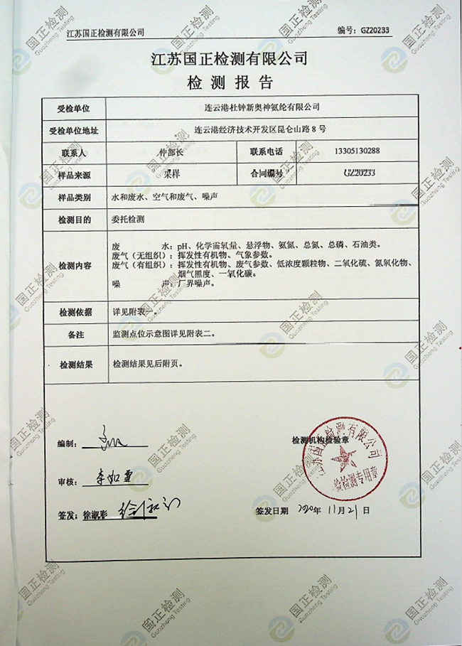 2020年職業(yè)環(huán)境檢測報告