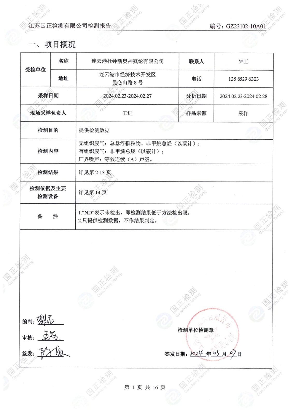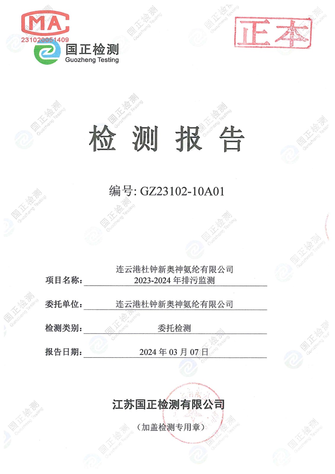 杜鐘氨綸2月檢測(cè) 23102-10A01杜鐘年排污檢測(cè)報(bào)告