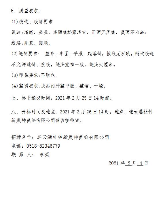 工作服招標(biāo)公告(2021-2)