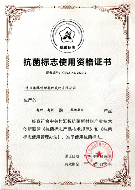 杜鐘氨綸作為CIAA會員,國內(nèi)唯一一家通過“抗菌標志”認證的氨綸供應商,持續(xù)致力于疫情防護,為推動健康中國建設,提高人民健康水平做貢獻。
