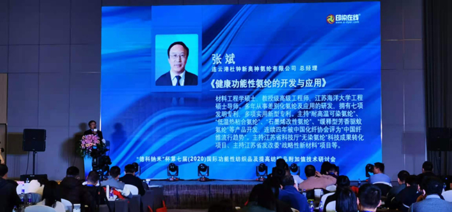 12月4日,由印染在線主辦的“乘風(fēng)破浪·智匯紡織”第七屆(2020)國際功能性紡織品及提高紡織品附加值技術(shù)研討會在杭州舉行。公司總經(jīng)理張斌帶隊參加了本次大會,并做了題為《健康功能性氨綸的開發(fā)和應(yīng)用》的報告。