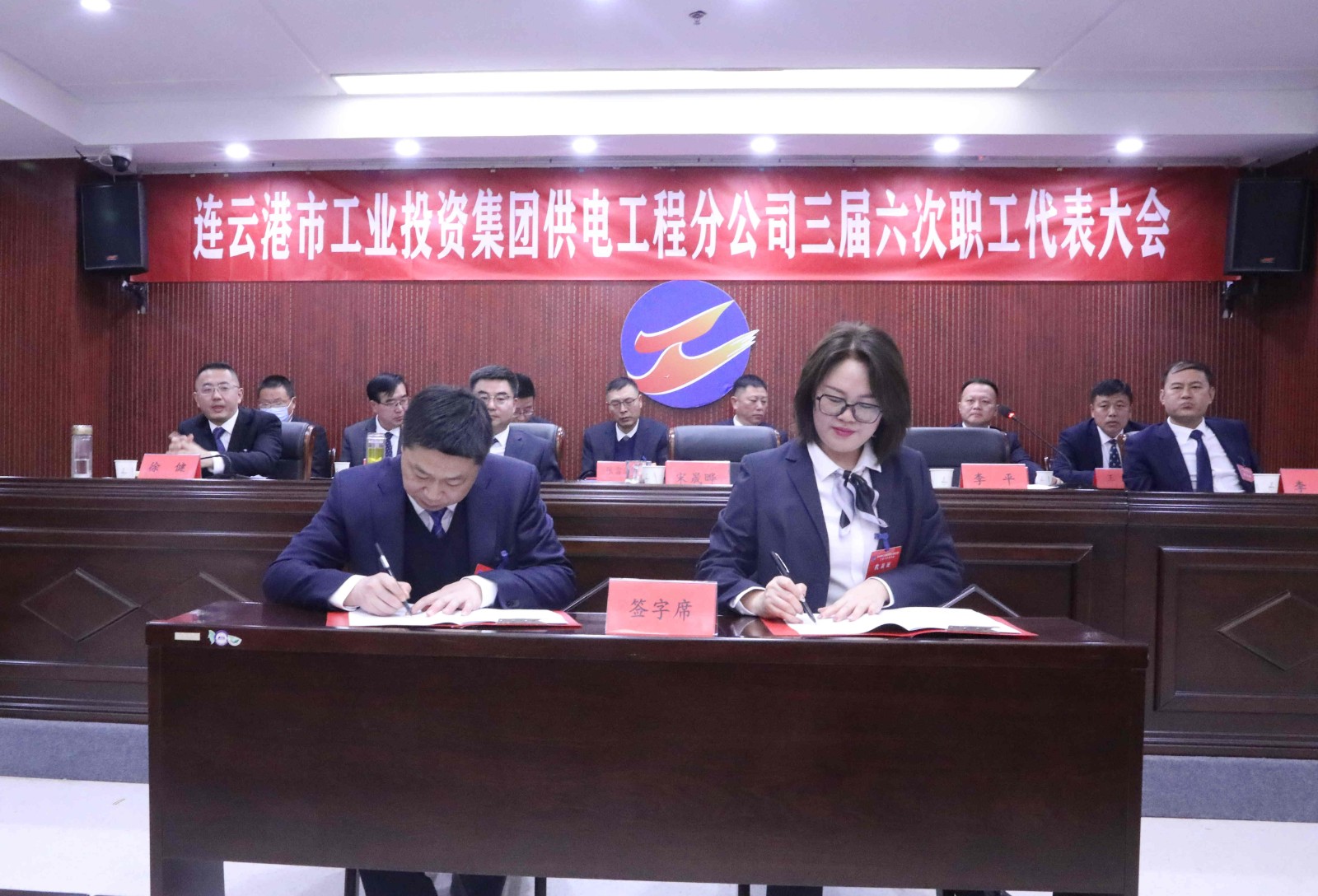 會上對2022年度先進單位、個人進行了表彰,臺北供電所、徐南供電所、灌西供電所、安全管理部等四家單位、部門作了表態(tài)發(fā)言并簽訂了《2023年度集體合同》《2023年度經營目標責任書》。