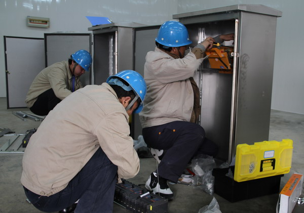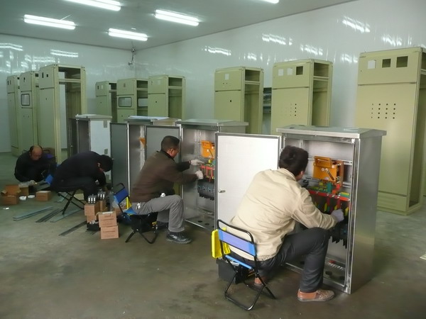 為快速、順利推進高低壓開關成套設備、三箱類產品、橋架及母線生產項目,公司高度重視相關管理、技術、市場經驗積累,購進數控機床,整合資源,創(chuàng)造條件,在抓好新廠籌建的同時,在原臺北供電所辦公場地進行低壓電氣設備開工試生產。領導班子成員全部親臨現(xiàn)場指導、觀摩。試生產現(xiàn)場,剪切、鉆孔、打磨、安裝、調試,有條不紊。一個個電纜分支箱、高低壓柜相繼“誕生”。低壓配電設備開工試生產,為加快項目建設步伐奠定了基礎。(司宣)