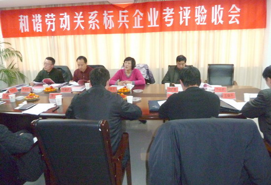 12月22日下午,在集團公司工會副主席盧同根陪同下,市總工會副主席許東方率領(lǐng)市創(chuàng)建和諧勞動關(guān)系標(biāo)兵企業(yè)考評組一行4人,對公司創(chuàng)建工作進行考評驗收。