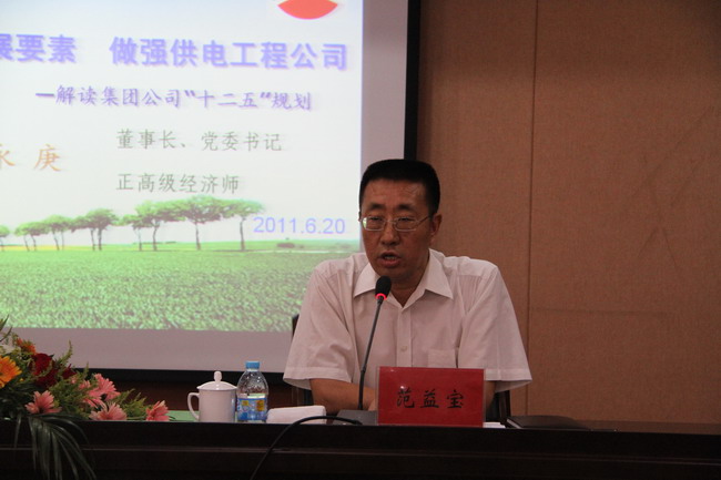 6月20日下午,集團公司董事長、黨委書記顧永庚來到公司作了題為“集聚集團發(fā)展要素,做強供電工程公司”的專題報告,報告會由公司總經(jīng)理、黨委書記范益寶主持。公司領(lǐng)導(dǎo)班子及副科級以上管理人員聆聽了報告。