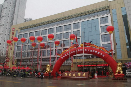 淮鹽大酒店是集團(tuán)投資的三星級商務(wù)酒店,酒店建筑面積7000平方米,擁有各類客房107間,豪華餐廳包廂13個,擁有800個餐位,其中一樓宴會大廳可以容納400人同時用餐,設(shè)有大中小三個會議室。酒店主理粵菜、淮揚菜、鹽場土菜等精品菜肴,并聘請資深名廚、曾在中央電視臺舉辦的滿漢全席擂臺賽中獲得金獎的特級廚師陳明生擔(dān)任行政總廚,使賓客在享受舒適、溫馨就餐環(huán)境的同時,體驗中華民族悠久、燦爛的飲食文化。
