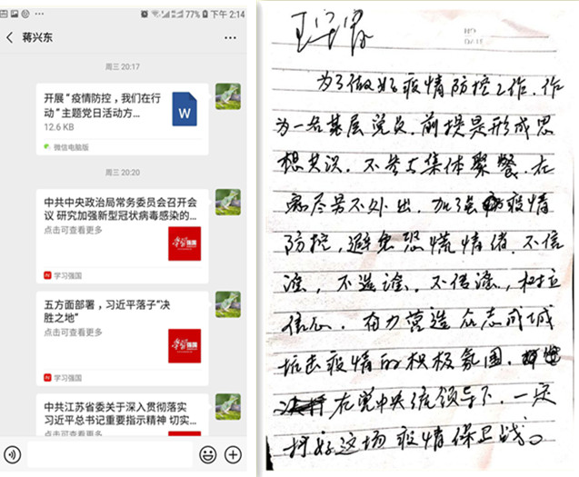 為了引導(dǎo)黨員統(tǒng)一思想認(rèn)識(shí),凝聚思想共識(shí),激發(fā)黨員做好疫情防控工作的思想自覺(jué)和行動(dòng)自覺(jué)。2月12日,臺(tái)南供電所通過(guò)微信方式組織開(kāi)展了“疫情防控,我們?cè)谛袆?dòng)”主題黨日活動(dòng)。在微信平臺(tái)上,黨員們共同學(xué)習(xí)了《中共中央政治局常務(wù)委員會(huì)召開(kāi)會(huì)議研究新型冠狀病毒感染的肺炎疫情防控工作 》、《五方面部署,習(xí)近平落子“決勝之地”》、《江蘇省委常委會(huì)召開(kāi)會(huì)議進(jìn)一步把疫情防控工作做實(shí)做細(xì)做到位》重要指示精神;同時(shí),開(kāi)展了“我為疫情防控出份力”活動(dòng),全體黨員暢談疫情防控體會(huì)和做法。黨員王守富在活動(dòng)中表示,作為一名基層黨員,前提是形成思想共識(shí),不參與集體聚餐,在家盡量不外出,不信謠、不傳謠,樹(shù)立信心奮力營(yíng)造眾志成城抗擊疫情的積極氛圍,在黨中央統(tǒng)一領(lǐng)導(dǎo)下,一定能打好疫情防控保衛(wèi)戰(zhàn)。(劉繼美)