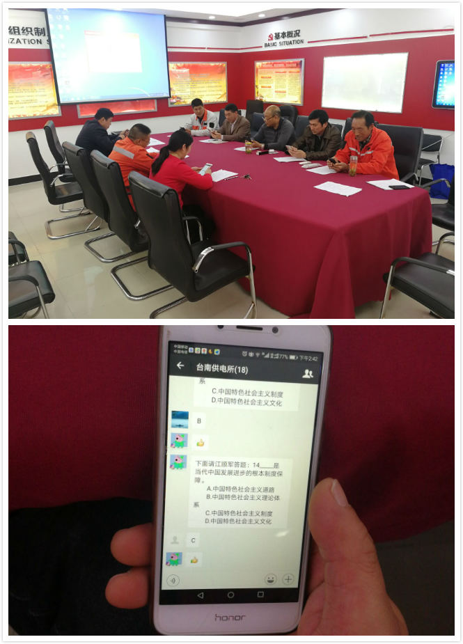 4月10日下午,臺南供電所全體黨員靜坐在會議桌旁,每人拿著一部手機,進行著一場特殊的考試。近年來,該所黨支部積極響應公司黨委創(chuàng)新黨員教育管理舉措,利用微信公眾平臺,開展“掌上黨課”和“指尖上廉政教育”活動,學習黨的十九大精神,進行黨紀黨規(guī)知識測試,實現隨時、隨地、隨身,提升了學習教育成效。(劉繼美)