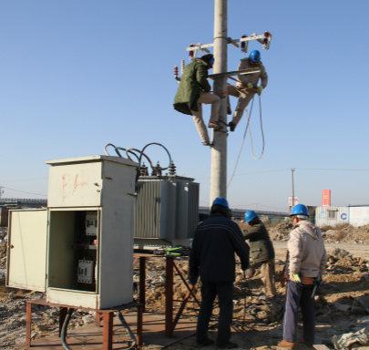 近日,臺北供電所組織職工為金海連云新城醫(yī)院項(xiàng)目安裝臨時(shí)用電,圖為施工現(xiàn)場。(電宣)
