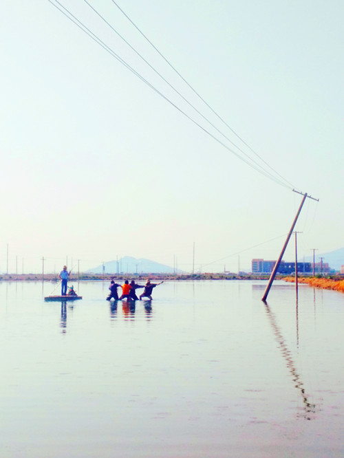9月20日,該所組織人員進(jìn)行搶修。搶修人員經(jīng)過(guò)現(xiàn)場(chǎng)勘查后,發(fā)現(xiàn)隱患地點(diǎn)處于池塘中,搶修車(chē)輛等大型工器具無(wú)法到達(dá),只能靠人工搶修。在與魚(yú)塘養(yǎng)殖戶(hù)協(xié)商后,俞德春、楊祖加、楊新軍等搶修人員在對(duì)低壓線路采取停電、驗(yàn)電、掛接地等安全措施后,利用小木船來(lái)回穿梭、傳送材料,再跳入沒(méi)腿深的水里,將電桿扶正、加固。此時(shí),水面上的船、水中的人、拖拽的線路成了鏡頭中的新聞亮點(diǎn)。最后在經(jīng)過(guò)半個(gè)多小時(shí)的特色搶修后,成功恢復(fù)供電。(錢(qián)明華)