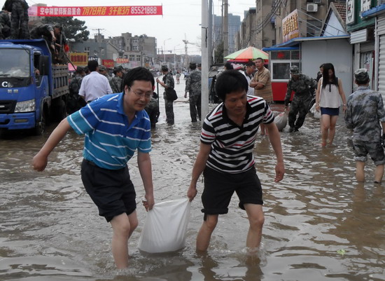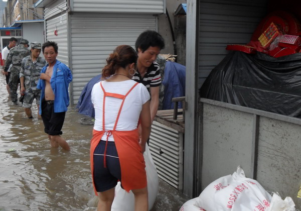 7月8日凌晨3點起,降雨強度大 、雨量大,巨龍農(nóng)貿(mào)市場積水深度30公分,最深處達(dá)60公分,兩個配電房、經(jīng)營出租房、職工宿舍等全部被淹。該單位立即啟動抗洪應(yīng)急預(yù)案,全體職工幾天來吃住在抗洪工作一線,幫助經(jīng)營戶轉(zhuǎn)移糧食,轉(zhuǎn)移被淹戶3家,建防洪堤6個; 對兩個配電房進行晝夜值班、排水。