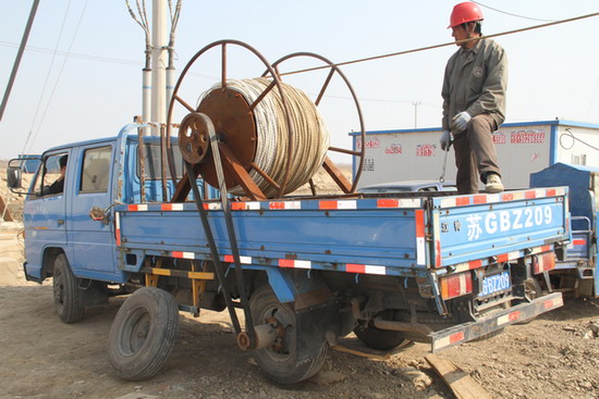 該所在承接的金海拋填工程供電線路架線中,首次遇到使用直徑240毫米的大導(dǎo)線,與原來施工中架設(shè)的導(dǎo)線50毫米相比,放線過程施工難度明顯加大。施工初期,他們沿用過去的放線設(shè)備,采取集中眾多人力、肩扛人拉的辦法,不僅職工勞動強度大,而且施工進度緩慢。