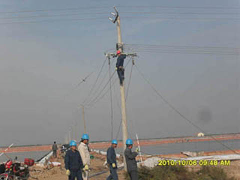 國慶期間,灌西供電所全體職工堅(jiān)守崗位,工作在中國華能風(fēng)力發(fā)電接電線路、集團(tuán)公司礦鹵二期工程作業(yè)施工現(xiàn)場(chǎng)。(圖為工人正在架設(shè)線路)(楊守全)