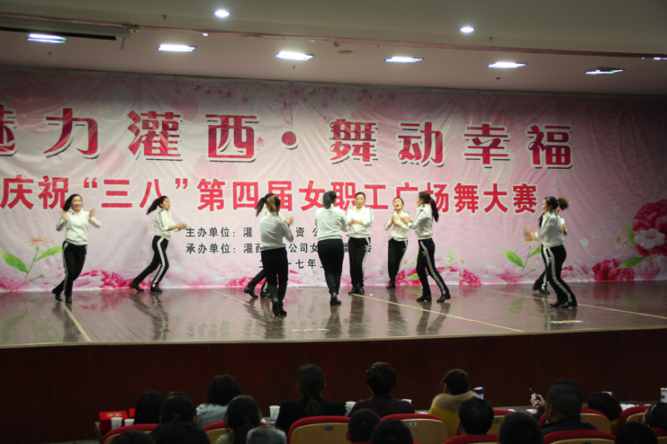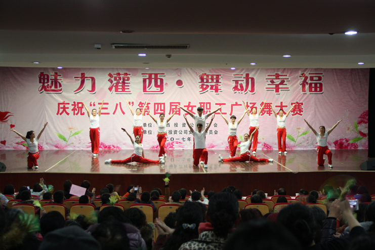 3月8日下午,灌西投資公司第四屆“魅力灌西•舞動(dòng)幸福”廣場(chǎng)舞比賽在灌云縣臨港產(chǎn)業(yè)區(qū)管委會(huì)禮堂舉行,由公司各單位的女工組成的8支代表隊(duì)參加角逐,廣大女工用婀娜的舞姿和精彩的表演慶祝國(guó)際“三八”婦女節(jié)的到來,觀看比賽的職工群眾有400余人。