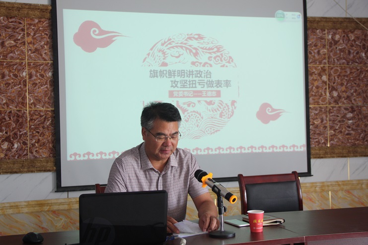 7月20日下午,投資公司黨委書記、董事長王德志圍繞“旗幟鮮明講政·攻堅(jiān)扭虧做表率”這個主題,在生產(chǎn)服務(wù)公司會議室為日曬制鹽片區(qū)黨員干部上專題黨課,強(qiáng)調(diào)各級黨組織和廣大黨員干部要全面落實(shí)省市委最新部署要求,切實(shí)增強(qiáng)旗幟鮮明講政治的思想自覺和行動自覺。