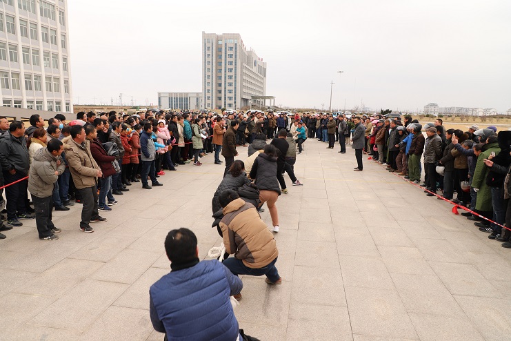 寒冷的天氣,擋不住員工的熱情。下午2時(shí)許,機(jī)關(guān)大樓前人聲鼎沸,一個(gè)個(gè)摩拳擦掌、躍躍欲試,大家都想在自己參加的項(xiàng)目里大顯身手。隨著一聲哨響,首先進(jìn)行的拔河比賽正式拉開了活動(dòng)的序幕,來自公司各單位共13支隊(duì)伍位按照抓鬮順序依次登臺(tái)亮相。賽場(chǎng)上,參賽隊(duì)員奮力拼搏,隨著紅色錘線的左右移動(dòng),啦啦隊(duì)的心也隨之遷動(dòng),此起彼伏的加油聲,歡呼聲傳遍全場(chǎng)。隨后進(jìn)行的跳繩比賽也在掌聲和歡迎笑聲中有序進(jìn)行。經(jīng)過激烈的角逐,各項(xiàng)比賽逐漸分出了高下,獲獎(jiǎng)選手們滿臉幸福,未取得名次的員工也收獲了參與的快樂。