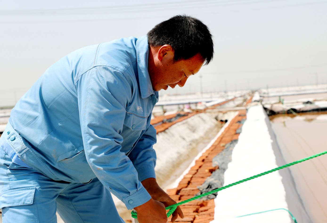 進入二季度以來,新河制鹽分公司積極響應(yīng)投資公司開展的“拼搏二季度,實現(xiàn)雙過半”競賽活動,鼓足了干勁,掀起大干二季度熱潮。5月23日,在新河制鹽公司的七班,幾名員工正在換裝新塑料布,只見有的釘壓條,有的扣樁繩,還有的在插塑料布的后墻,搶在雨水天氣之前進行鹽池塑料布的跟換,鹽池堰的修整,確保鹽池鹵水不跑漏,雨天鹽池不進水。