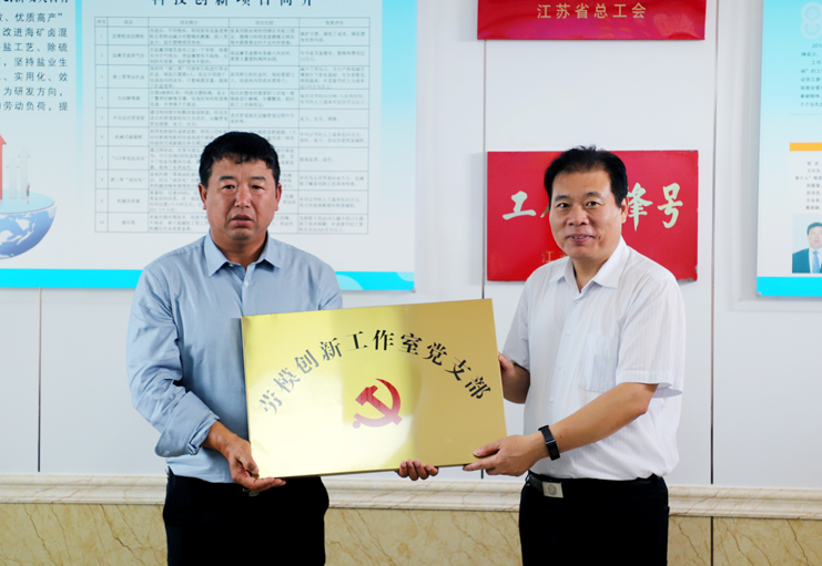 在日曬制鹽公司新河分公司的安樹林勞模創(chuàng)新工作室現(xiàn)場,丁書記一行觀看了技術(shù)創(chuàng)新成果展示專題片,還為工作室的“勞模創(chuàng)新工作室黨支部”進行了授牌。