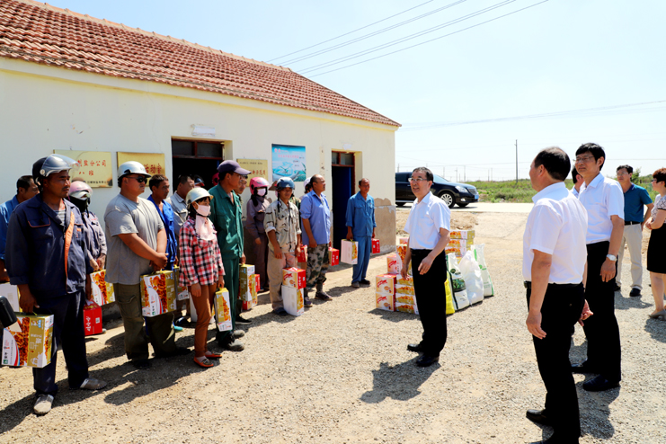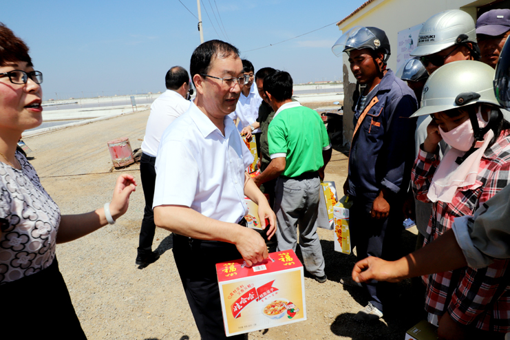 入伏以來,持續(xù)高溫,為確保一線生產(chǎn)單位工作順利開展,保證員工身體健康。7月18日上午,集團公司總經(jīng)理胡建明、副總經(jīng)理張其海一行深入日曬制鹽公司走訪慰問一線職工,把綠豆、飲料等慰問品送到他們手中,在炎炎夏季,為一線職工送去集團公司領導的深切關懷與陣陣清涼。