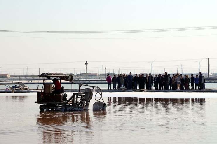 參觀團(tuán)首先參觀了日曬制鹽公司扒鹽現(xiàn)場,在參觀過程中,聽取了相關(guān)情況的介紹,了解了原鹽的生產(chǎn)發(fā)展演變,參觀感受了現(xiàn)代化帶鹵扒鹽生產(chǎn)場景;隨后,參觀團(tuán)一行參觀了新河制鹽的黨建室和創(chuàng)新勞模工作室。通過參觀,他們一致表示我公司的黨建室給他們留下了深刻印象,尤其是發(fā)揮勞模創(chuàng)新工作室示范引領(lǐng)作用的做法對(duì)他們開展黨建工作有較好的啟示。(張明建)