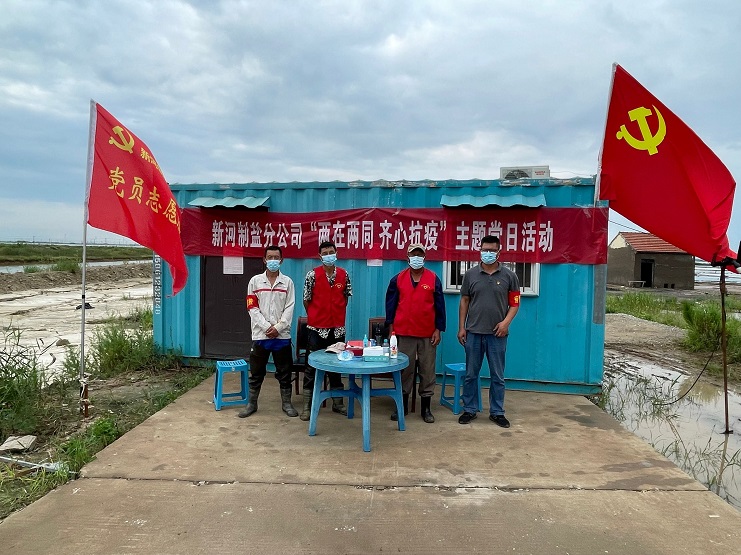 新河制鹽分公司根據(jù)投資公司黨委安排,在零班二期設(shè)立卡點(diǎn),嚴(yán)格落實(shí)領(lǐng)導(dǎo)干部24小時(shí)帶班、值班和疫情突發(fā)狀況報(bào)告等制度,支部亮旗、黨員亮徽、職工亮力,共同織就公司疫情防控網(wǎng)。一個(gè)支部就是一座堡壘,一名黨員就是一面旗幟,全公司黨員紛紛亮出身份,主動(dòng)請纓,沖鋒在前,放棄假期積極投身最需要的地方,用行動(dòng)踐行初心使命,全力打好這場疫情防控阻擊戰(zhàn)?。ㄐ潞狱h支部)