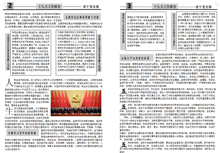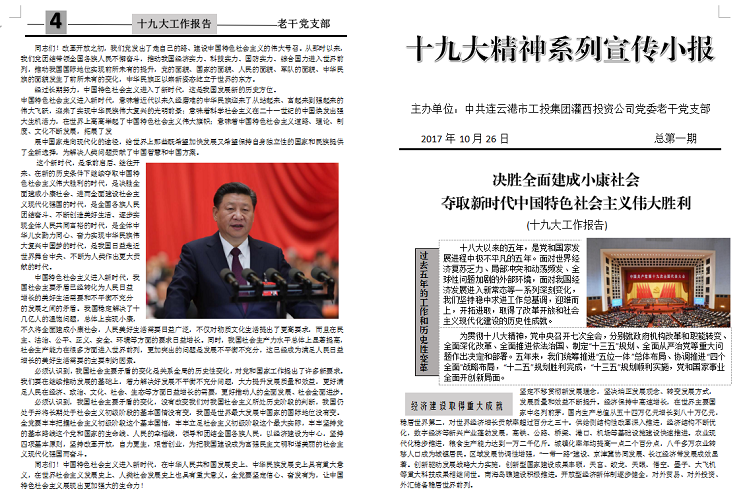 老干黨支部專門印發(fā)了十九大精神系列宣傳小報(bào),通過(guò)老年活動(dòng)室使老黨員們能靜下心來(lái)“讀原著、學(xué)原文、悟原理”。老黨員們對(duì)學(xué)習(xí)十九大精神熱情高漲,紛紛捧起小報(bào)仔細(xì)閱讀??紤]到有的黨員年齡偏大,老干黨支部將定期在老年活動(dòng)室組織十九大精神朗讀活動(dòng)。(唐蕾榮)