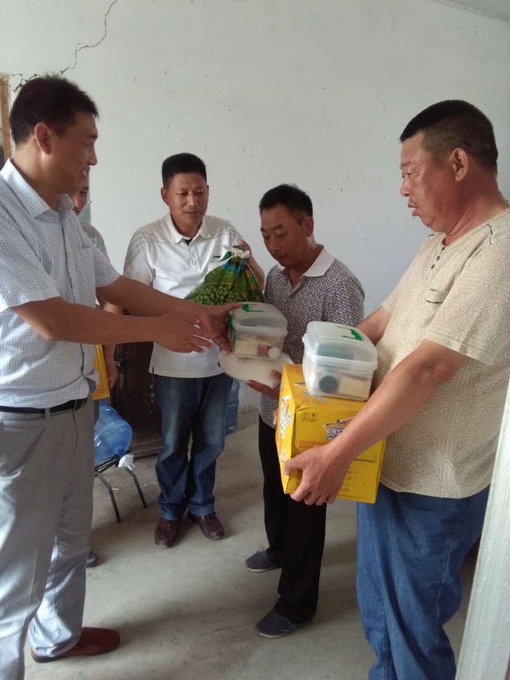 由于近日連續(xù)高溫,西旺水產(chǎn)公司按照投資公司的通知精神,積極行動(dòng)起來(lái),認(rèn)真做好防暑降溫工作。一時(shí)及時(shí)調(diào)整池塘值班點(diǎn)上的人員作息時(shí)間,避開(kāi)高溫時(shí)段,備好了兩套防暑藥物盒;二是發(fā)放《夏季安全生產(chǎn)防范重點(diǎn)》材料到每位養(yǎng)殖戶(hù),宣傳防暑預(yù)防、中暑急救等知識(shí);三是開(kāi)展“送清涼”工作,購(gòu)買(mǎi)防暑物品送到一線員工手里,表示慰問(wèn)。圖為到西旺公司領(lǐng)導(dǎo)到一線為員工送上防暑物品。(西旺工會(huì))