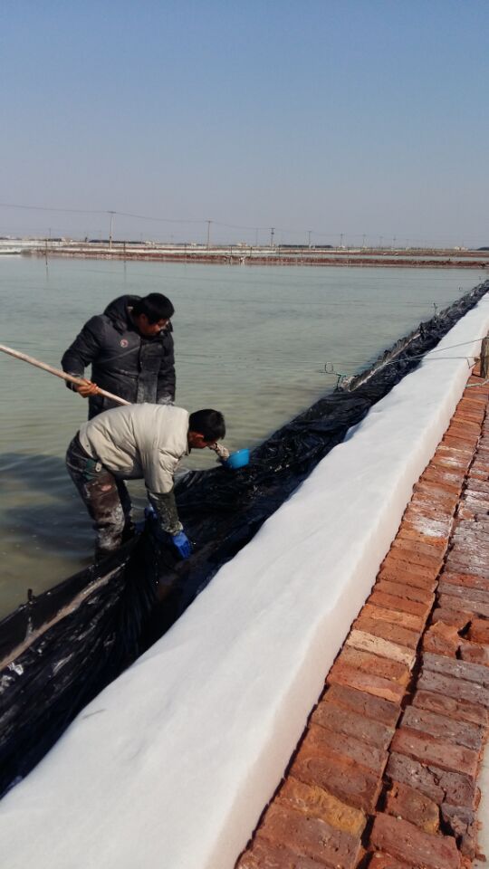 埒南制鹽分公司認真做好灘場文明工作,做好“三雨”期間的塑池管理,減少塑池鹵水跑冒滴漏,最大限度地提高生產(chǎn)文明化水準,提高鹵水利用率,為降本增效打好基礎。圖為職工在降雨后及時進行整理塑布。(耿劉)