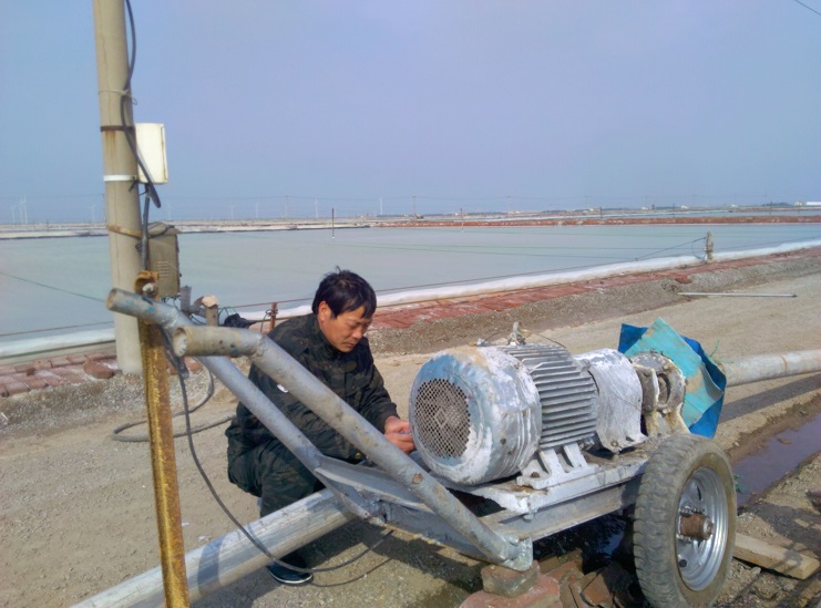 由于公司改革改制的深入,日曬制鹽機電工全部下放到生產(chǎn)班組進(jìn)行機電設(shè)備的維護(hù)管理,并負(fù)責(zé)扒鹽過程中機械和電氣設(shè)備的維護(hù)使用。雖然身為機電班長,但是嚴(yán)德軍和大家一樣二話不說,帶頭服從大局沉到生產(chǎn)班組,不僅維護(hù)好灘地機械設(shè)備,及時處理機電故障,而且保證扒鹽工作的順利進(jìn)行。同時,嚴(yán)德軍還利用自己的業(yè)務(wù)技術(shù),擔(dān)當(dāng)起日曬制鹽公司新河、埒南兩個單位的灘地電力技術(shù)指導(dǎo)任務(wù),哪里機械和電力線路出現(xiàn)疑難問題,他總是隨叫隨到,和同志們一起研究解決方案,不影響扒鹽和生產(chǎn)工作的開展。新河分公司一個扒鹽機泵遙控器失靈無法操作,維修人員怎么也找不出原因,他通過對該遙控器關(guān)鍵線路檢測,很快發(fā)現(xiàn)了一個小的接線點沒有連接好,并且迅速解決了問題。生產(chǎn)服務(wù)公司鈣液基地一臺機泵的熱繼電器出現(xiàn)保護(hù)現(xiàn)象,不能正常工作,如果不及時維修好就將影響生產(chǎn)班組鈣液的輸送,繼而影響正常礦鹵除硫,他得知情況后二話不說前往對該機泵和熱繼電器進(jìn)行仔細(xì)檢查,很快恢復(fù)了該繼電器運作,保證了鈣液的正常輸送,為生產(chǎn)班組礦鹵除硫贏得了時間。