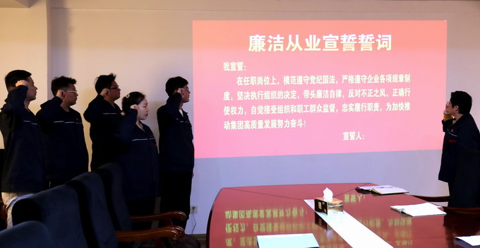 會議傳達(dá)了集團(tuán)紀(jì)委《關(guān)于扎實(shí)開展年輕干部“廉政教育月”活動(dòng)的通知》文件精神,簽訂了《廉潔承諾書》、發(fā)放了《家庭助廉倡議書》和進(jìn)行廉潔從業(yè)宣誓。
