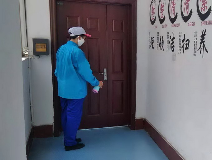 保潔人員每天對(duì)車(chē)間公共區(qū)域做好消殺工作