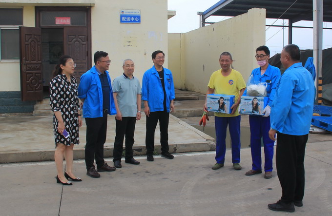 6月24日,我公司工會(huì)開展夏季“送清涼”活動(dòng),黨委副書記、工會(huì)主席曹開明、副總經(jīng)理張學(xué)峰和田磊一行,為高溫下的一線職工送去了綠豆、白糖、飲料、茶葉等防暑降溫品。