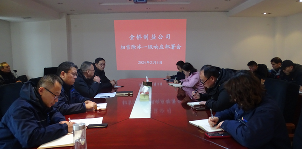 公司副總經理凌家佳傳達了《集團公司氣象災害應對工作提示單》要求。公司黨委書記、董事長、總經理田磊宣讀《公司掃雪除冰事故專項應急預案》,并就啟動掃雪除冰一級響應工作提要求:要提高認識、統(tǒng)籌推進,加強值班值守,切實提高冰雪清除工作的效率和質量;要統(tǒng)一思想、奮力擔當,履行好安全生產責任,全力做好融雪鹽市場保供工作。